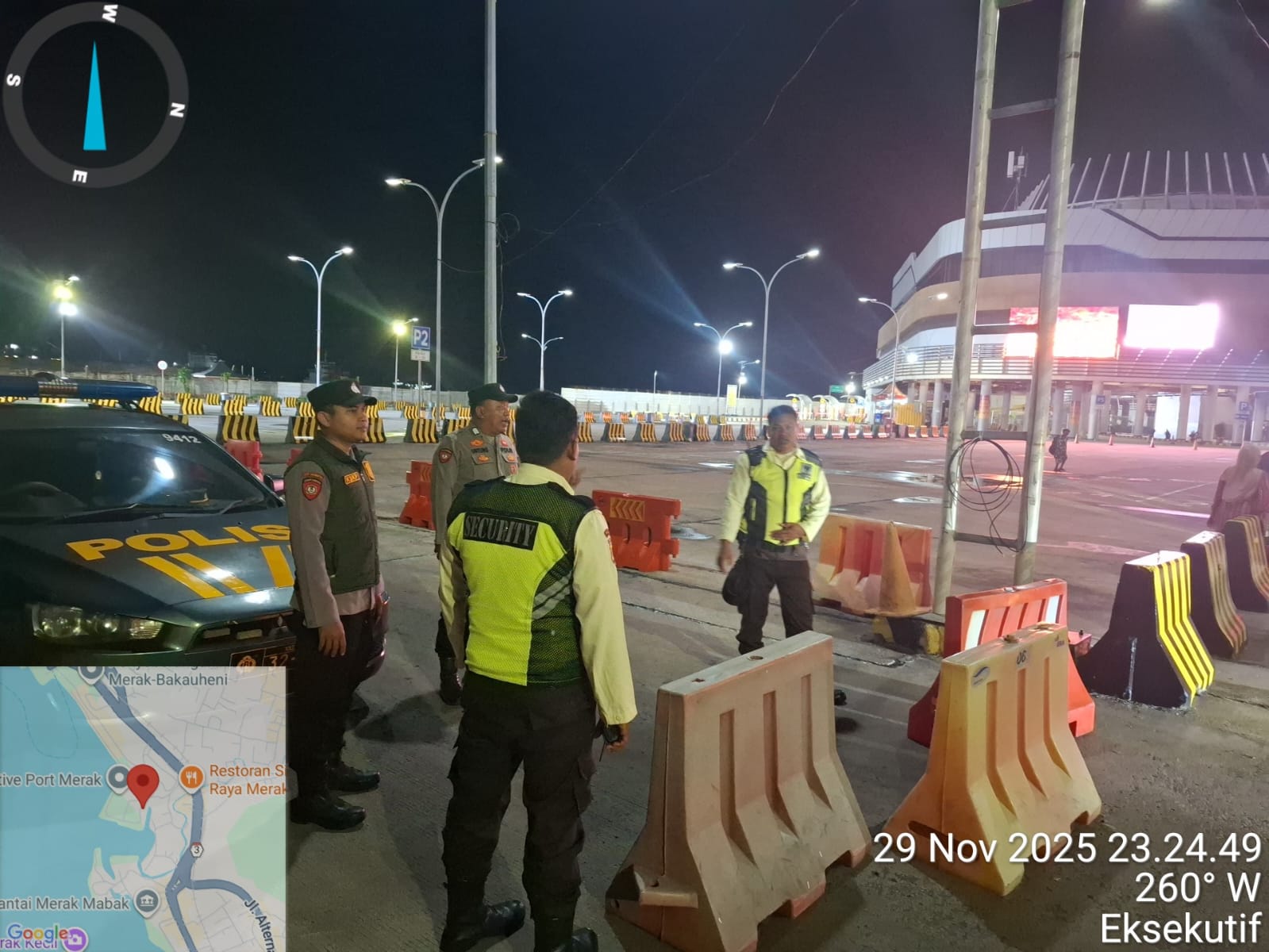 Cilegon - Personil Polsek Kskp Merak Polres Cilegon melaksanakan patroli di kawasan pelabuhan merak memberikan rasa aman dan damai, Senin (01/12/2025)