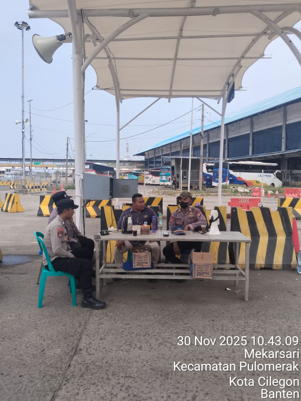 Cilegon - Personel Polsek Kskp Merak Polres Cilegon Polda Banten melaksanakan sambang dan patroli kawasan pelabuhan merak dalam rangka menjaga Harkamtibmas di Kawasan Pelabuhan Merak, Senin (01/12/2025).