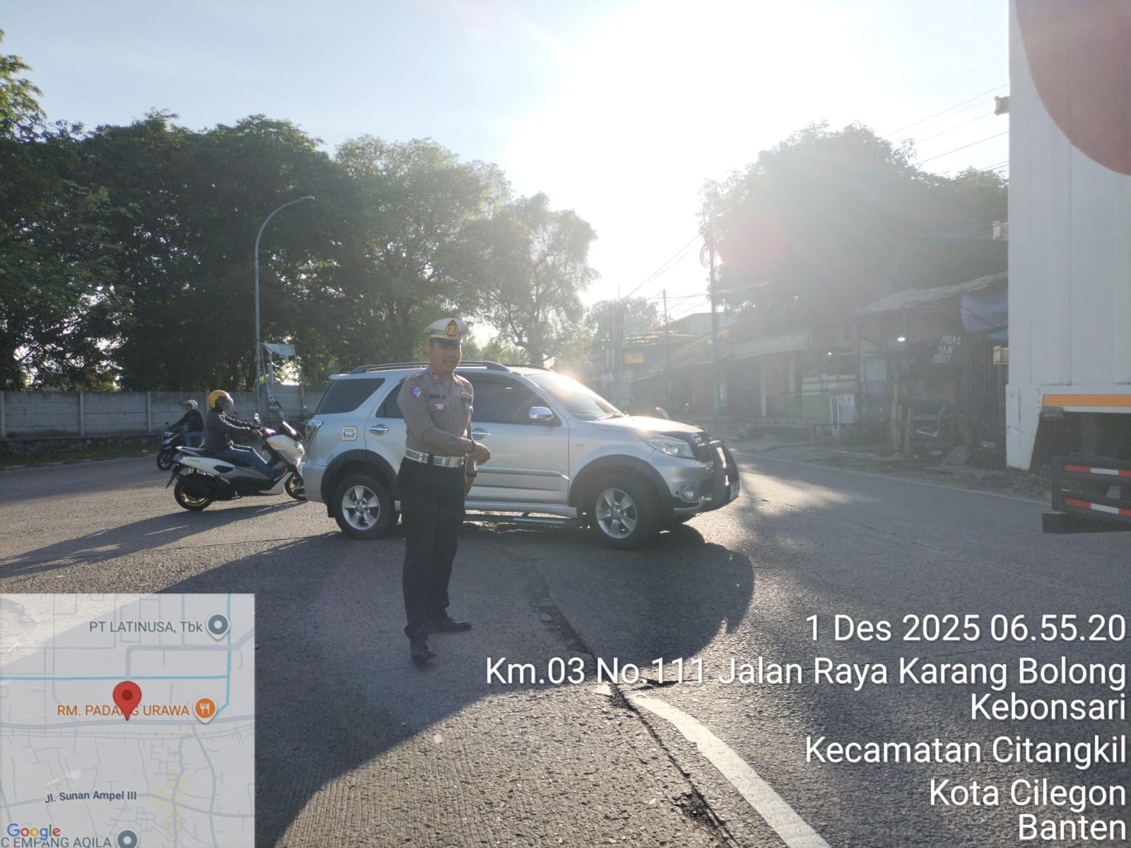 Cilegon - Tingginya mobilitas masyarakat pada jam-jam sibuk, tingkat kerawanan baik itu kemacetan ataupun kecelakaan pasti ada potensi, sehingga untuk mengantisipasi hal tersebut Personil Polsek Ciwandan Polres Cilegon Polda Banten Bhabinkamtibmas melaksanakan Strong Point pada sejumlah lokasi, Senin (01/12/2025).