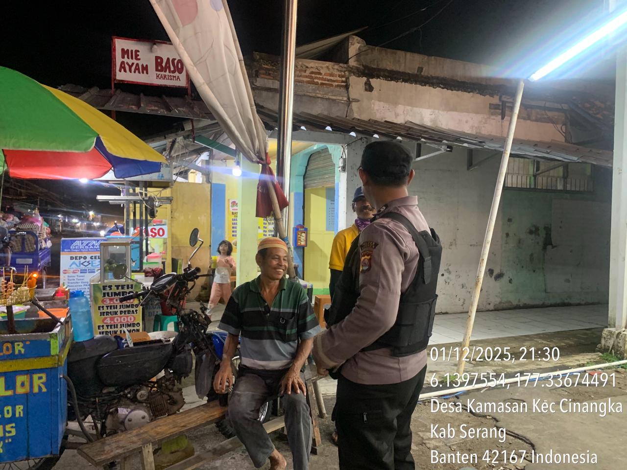 *Polres Cilegon* – Dalam Rangka Pencegahan Street Crime dan Memelihara situasi keamanan dan ketertiban serta memberikan rasa aman dan nyaman di masyarakat,Salah satu upaya untuk mewujudkan hal tersebut sebagaimana yang dilakukan oleh Personil Polsek Cinangka Polres Cilegon Polda Banten melaksanakan giat patroli blue light malam hari hingga menjelang pagi, Selasa (02/12/2025).