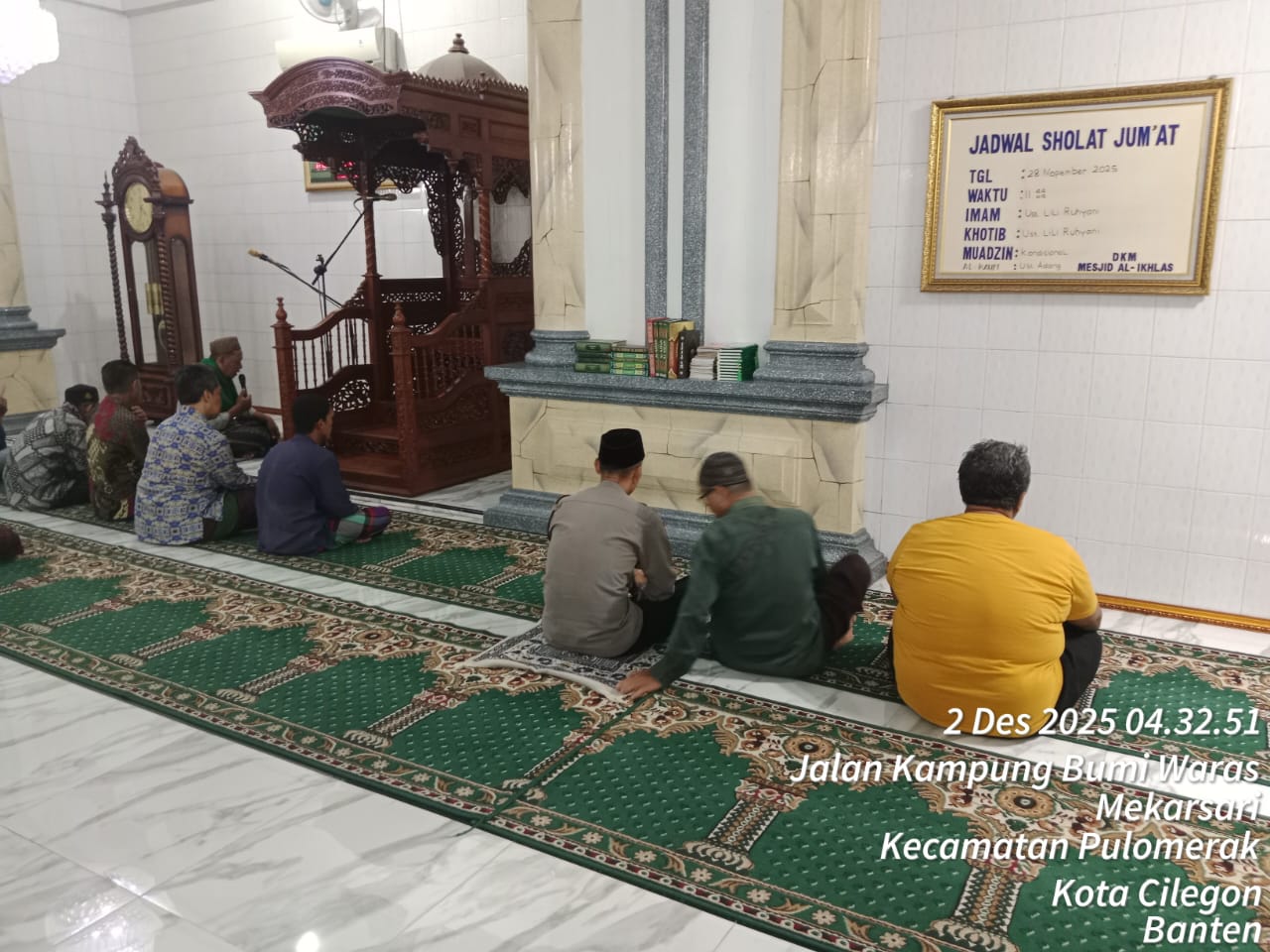 Cilegon – Personil Kskp Merak Polres Cilegon Polda Banten menggelar kegiatan Pembinaan Rohani dengan shalat subuh keliling di Masjid Yang ada Di Daerah hukum Polsek Kp Merak Polres Cilegon Polda Banten, Selasa (02/12/2025).