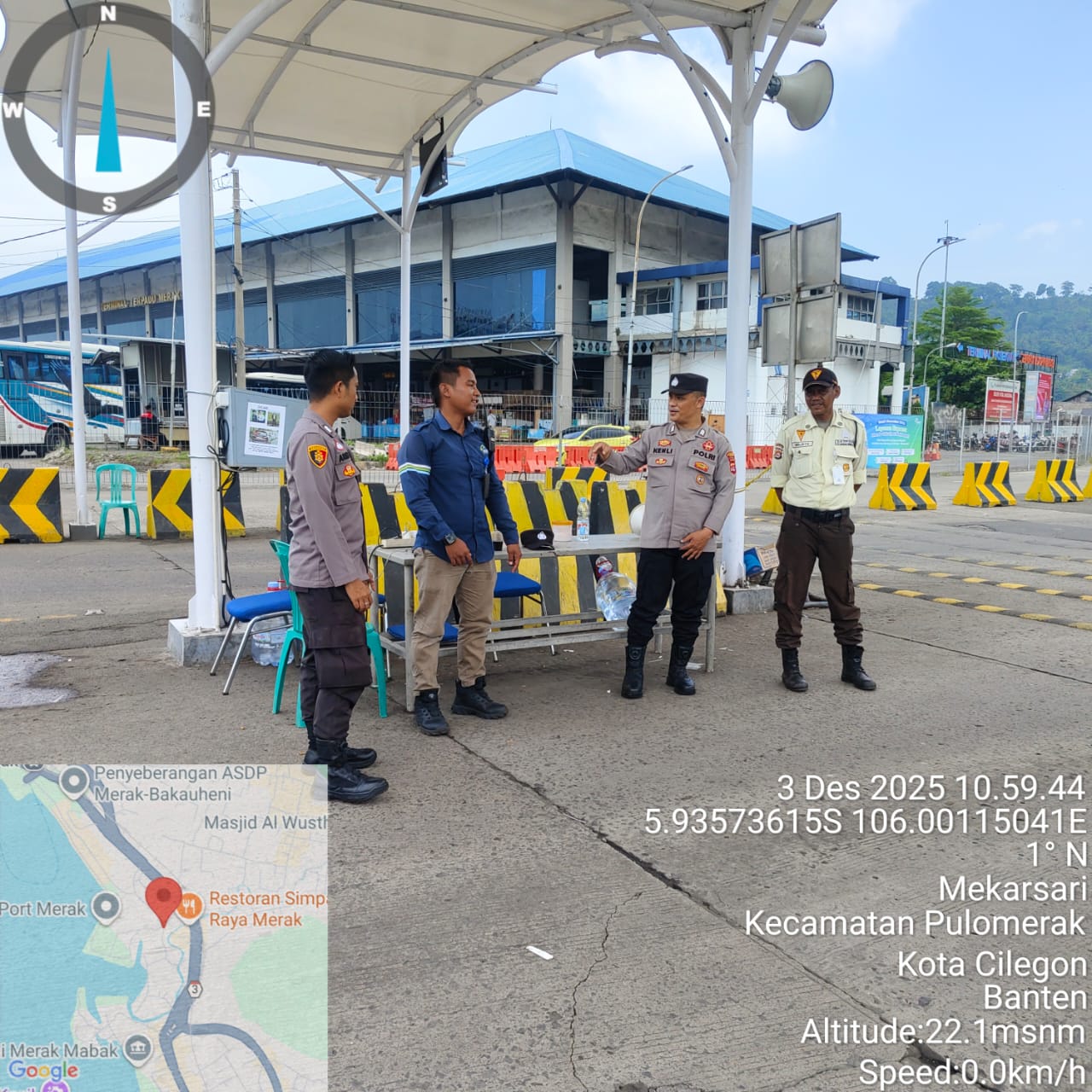 Cilegon - Personel Polsek Kskp Merak Polres Cilegon Polda Banten melaksanakan sambang dan patroli kawasan pelabuhan merak dalam rangka menjaga Harkamtibmas di Kawasan Pelabuhan Merak, Rabu (03/12/2025).