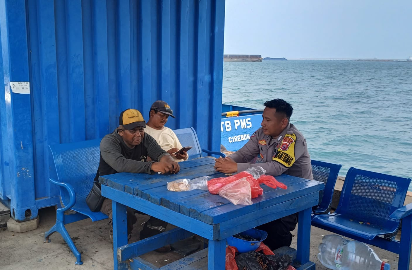Jalin Silaturahmi, Bhabinkamtibmas Pelabuhan Polsek KSKP Banten berbincang ke Buruh Pelabuhan