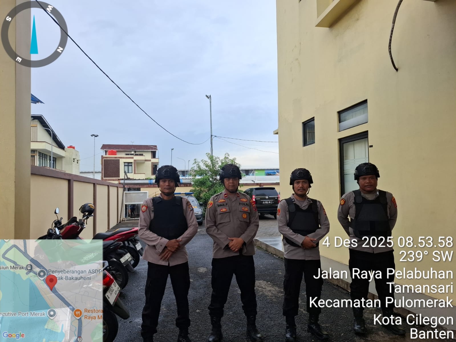Cilegon - Personel piket jaga Polsek Kskp Merak Polres Cilgon Polda Banten melaksanakan siaga 1 Polsek pelaksanaan Sispam Mako oleh piket siaga dipimpin oleh Kspk Polsek Kskpy Merak Polres Cilegon Polda Banten, Kamis (04/12/2025).