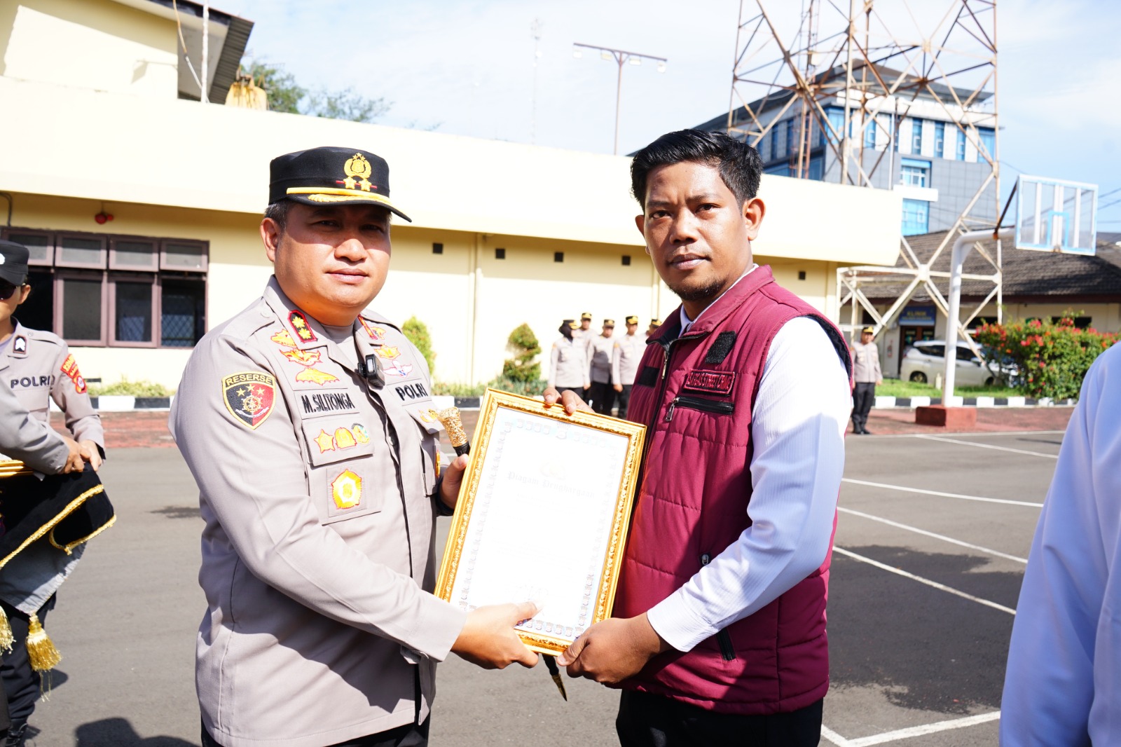 Cilegon – Polres Cilegon Polda Banten menggelar apel pemberian penghargaan kepada personel dan warga masyarakat yang berprestasi dalam membantu proses pencarian orang hilang secara cepat dan efektif. Kegiatan berlangsung di Lapangan Apel Satya Haprabu Polres Cilegon, dipimpin langsung oleh Kapolres Cilegon AKBP Dr. Martua Raja Taripar Laut Silitonga, S.H., S.I.K., M.Si. Jumat pagi (5/12/2025)