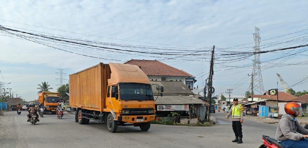 Aksi Nyata Pelayanan Masyarakat Di Sore, Bripka Gery & Dishub Bantu Lancarkan Lalu-lintas Di Jalan Raya PT Apexindo Bojonegara