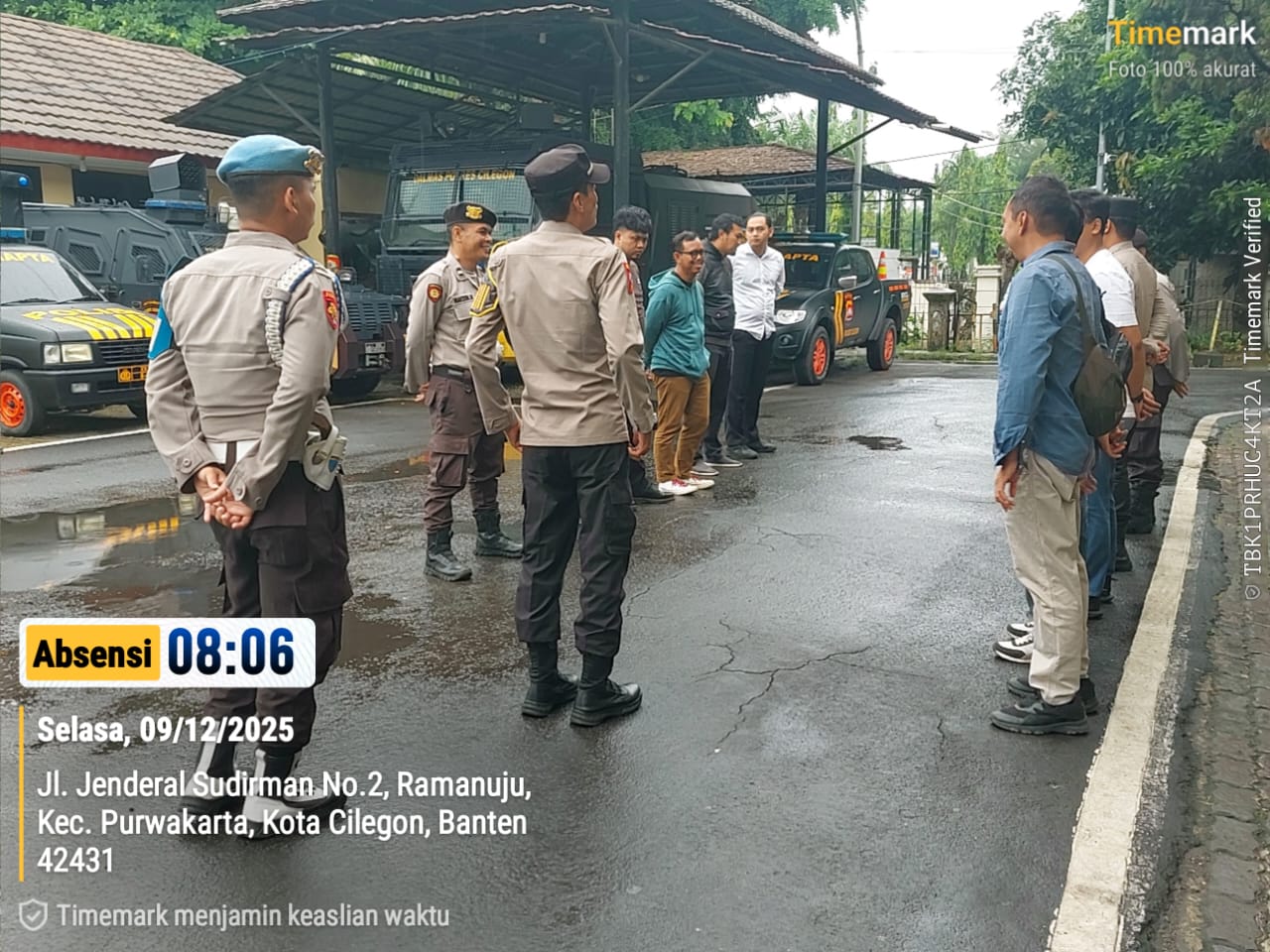 Cilegon, personel Satreskrim Polres Cilegon Polda Banten melaksanakan piket di penjagaan pintu masuk Polres Cilegon Polda Banten untuk memastikan mako Polres Cilegon dalam keadaan aman dan nyaman dalam melayani Masyarakat tanpa adanya gangguan kejahatan. Selasa (09/12/2025).