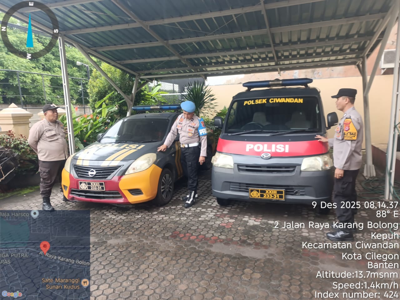 Cilegon - Ka SPKT Polsek Ciwandan Polres Cilegon Polda Banten Pimpin langsung pengecekan kendaraan Dinas Dan Inventaris Polsek Ciwandan Saat Serah terima Tugas Penjagaan, khususnya mobil patroli, Selasa (09/12/2025).