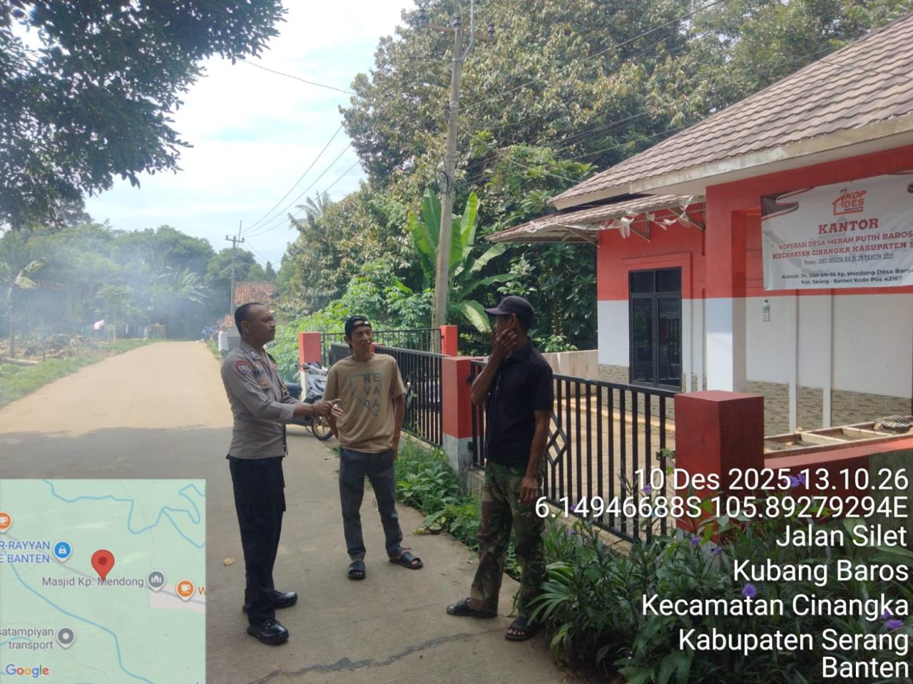 Kapolres Cilegon Polda Banten AKBP Martua Raja Taripar Laut Silitonga Melalui Kapolsek Cinangka Polres Cilegon Polda Banten IPTU Rusnata Mengatakan kegiatan sambang ini rutin dilakukan oleh seorang babinkamtibmas di daerah binaannya setiap hari guna memberikan pendekatankan diri kepada masyarakat juga pesan-pesan kamtibmas diantaranya menghimbau kepada masyarakat agar meningkatkan kewaspasaan guna mencegah terjadinya tindak kriminal.