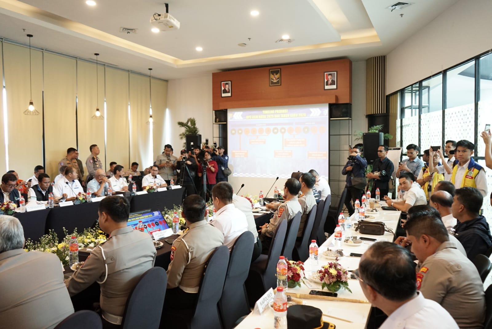 Polda Banten memaparkan kesiapan sarana prasarana, mulai dari Pelabuhan Merak dengan 7 dermaga dan 69 kapal, buffer zone PT Indah Kiat dengan kapasitas lebih dari 2.000 kendaraan kecil, hingga Pelabuhan Ciwandan dan Pelabuhan BBJ sebagai titik pendukung penyeberangan. Sejumlah pola rekayasa lalu lintas turut disiapkan, mulai dari pengalihan arus, delay system KM 43 dan 68, hingga skema satu arah menuju pelabuhan ketika terjadi kepadatan.