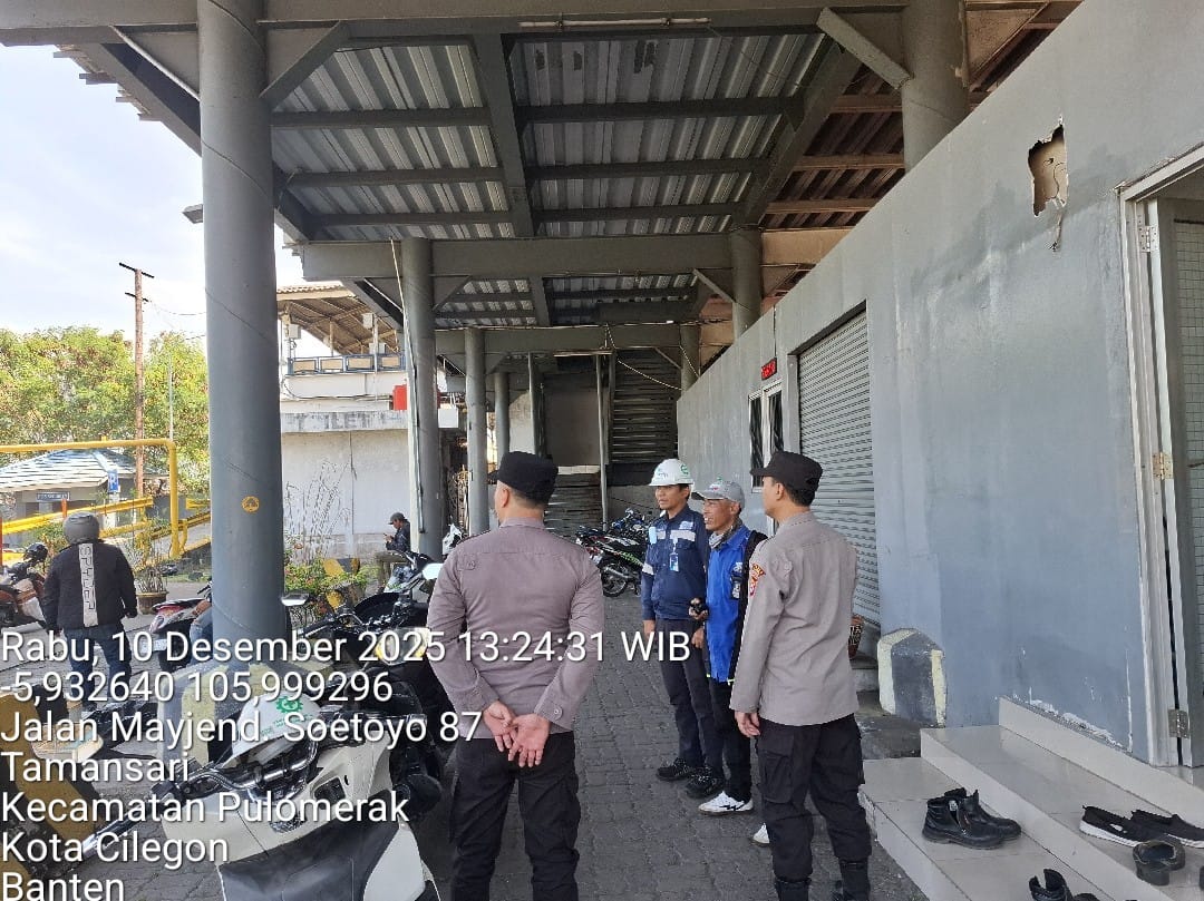 Cilegon - Personel Polsek Kskp Merak Polres Cilegon Polda Banten melaksanakan sambang dan patroli kawasan pelabuhan merak dalam rangka menjaga Harkamtibmas di Kawasan Pelabuhan Merak, Rabu (10/12/2025).