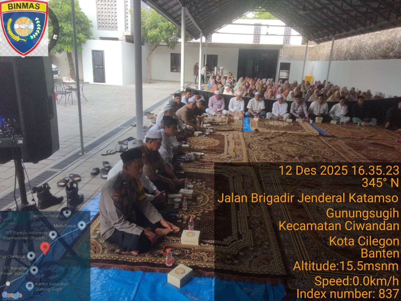 Cilegon - Bhabinkamtibmas Polsek Ciwandan Polres Cilegon Polda Banten menghadiri kegiatan Doa Bersama dan Dilanjutkan Pengajian Rutin dilingkungan Kelurahan Samangraya Kecamatan Citqngkil Kota Cilegon, Sabtu (13/12/2025).
