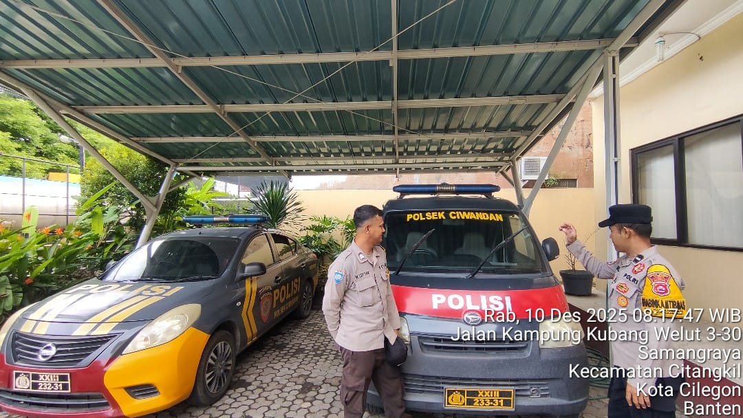 Cilegon - Ka SPKT Polsek Ciwandan Polres Cilegon Polda Banten Pimpin langsung pengecekan kendaraan Dinas Polsek Ciwandan, khususnya mobil patroli,Minggu (14/12/2025).