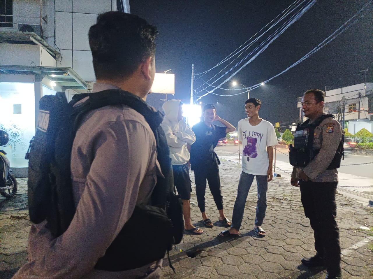 Kanit Turjawali Satsamapta Ipda Ferri dan Anggota Patroli Maung Presisi Sat Samapta Polres Cilegon menghimbau  kepada masyarakat kota Cilegon untuk selalu waspada dan meningkatkan keamanan di lingkungan sekitarnya guna mengantisipasi kejadian tindak pidana khususnya 3C agar terciptanya situasi yang aman dan kondusif. (Satsamapta)