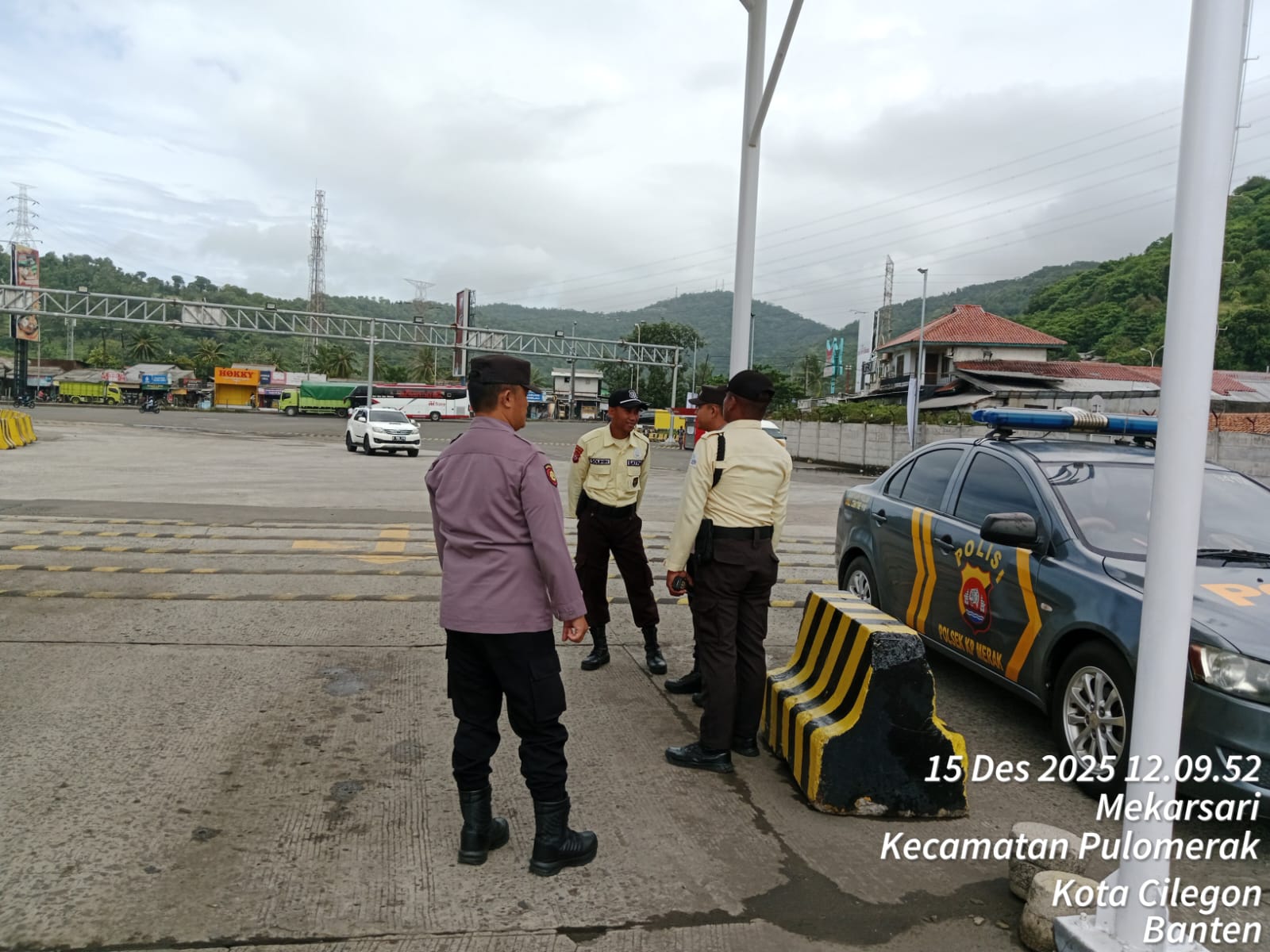 Cilegon - Personel Polsek Kskp Merak Polres Cilegon Polda Banten melaksanakan sambang dan patroli kawasan pelabuhan merak dalam rangka menjaga Harkamtibmas di Kawasan Pelabuhan Merak, Senin (15/12/2025).