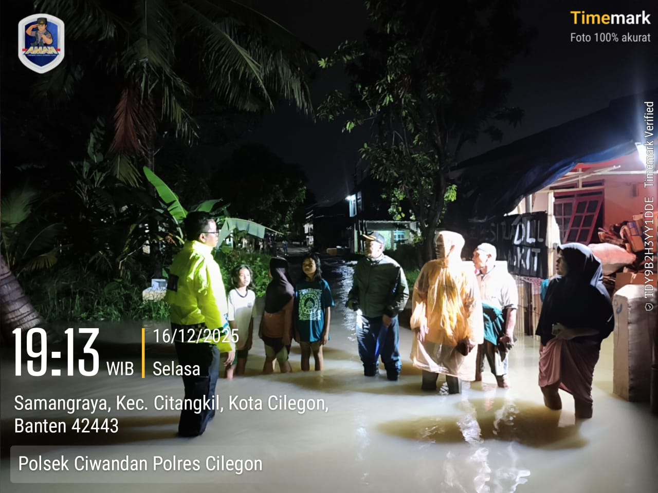 Cilegon - Bhabinkamtibmas Kelurahan Samangraya Polsek Ciwandan Polres Cilegon BRIPKA Marisco bersama Ketua Rt 01/02 dan Ketua Rw 02 Kel. Samangraya, melaksanakan monitoring wilayah pasca hujan lebat di Link. Warung Juet Rt 01/02 Kel. Samangraya Kec. Citangkil Kota Cilegon, Selasa (16/12/2025).