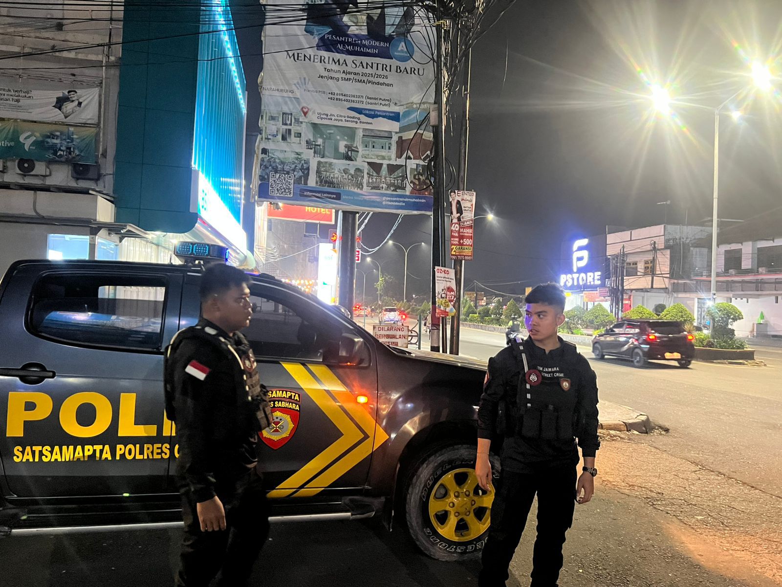 Cilegon - Rabu (17/12/2025) Kanit Turjawali Satsamapta Ipda Ferri beserta Anggota Patroli Maung Presisi Satsamapta Polres Cilegon melaksanakan patroli street crime untuk menjaga Harkamtibmas di daerah hukum Polres Cilegon Dalam rangka mencegah tindak pidana 3C (Curat, Curas dan Curanmor) agar situasi yang aman dan kondusif, anggota Patroli Maung Presisi Satsamapta Polres Cilegon di jalan protokol kota Cilegon.