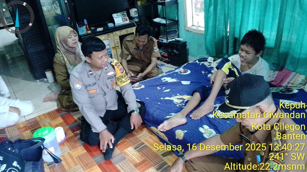 Cilegon - Bhabinkamtibmas Kel. Kepuh, AIPDA MERE ERLANSYAH, bersama Lurah Kepuh, membesuk anak yang sakit, Miftahul Hilmi, di Link. Rombongan RT. 01/01 Kel. Kepuh Kec. Ciwandan, Selasa (16/12/2025).