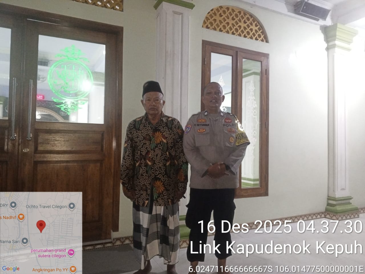 Cilegon - Dalam Rangka Memakmurkan Masjid Dan Sambang,Bhabinkamtibmas Polsek Ciwandan Polres Cilegon Polda Banten Sholat Berjama’ah dan Bersilaturahmi kepada para tokoh Agama sebagai upaya meningkatkan Ukhuwah Islamiyah dalam menjalin silaturahmi dan membangun komunikasi yang baik, Kamis (18/12/2025).