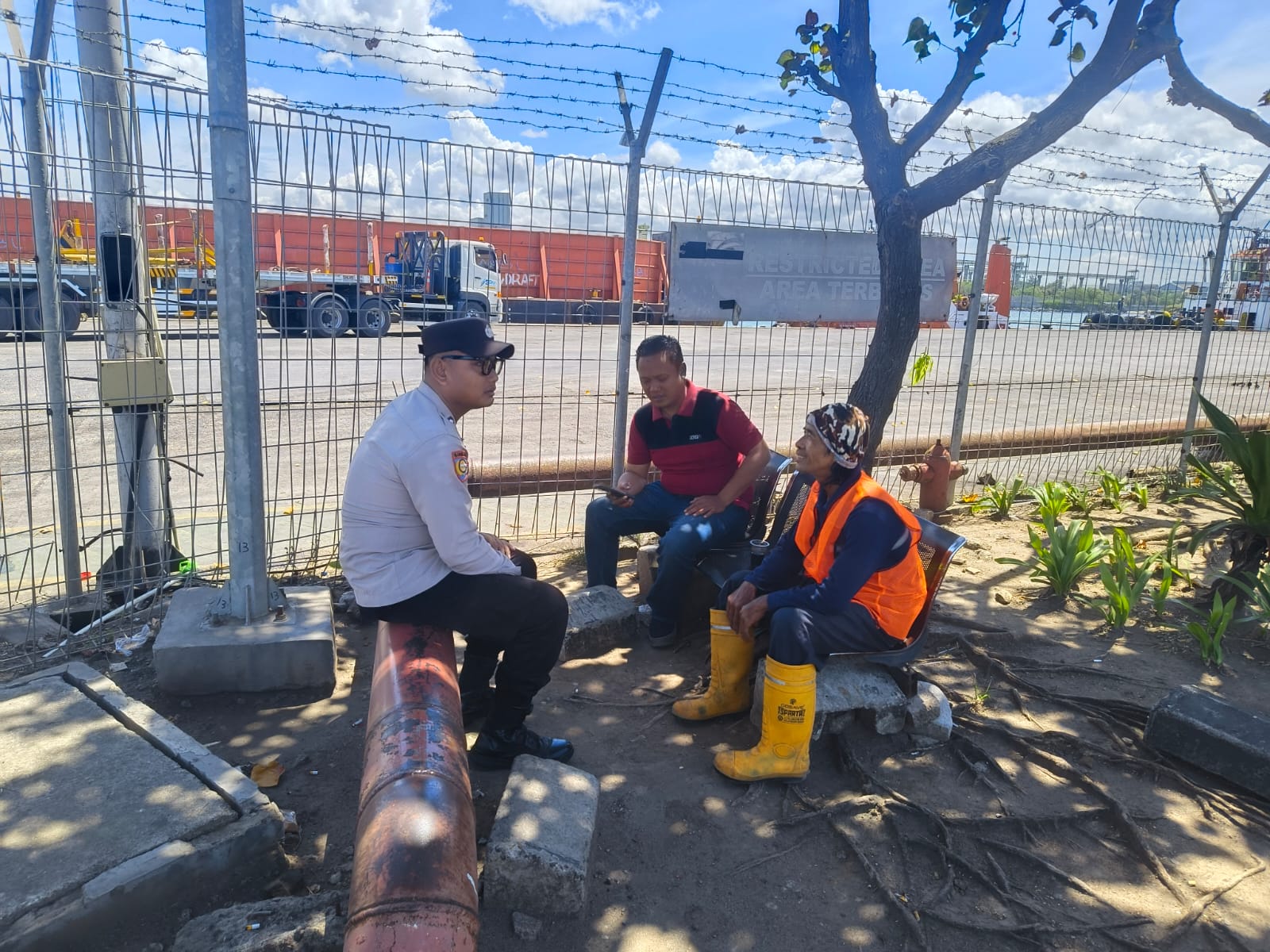 Jalin Silaturahmi, Personil Bhabinkamtibmas Polsek KP Banten Berbincang Dengan Buruh Pelabuhan