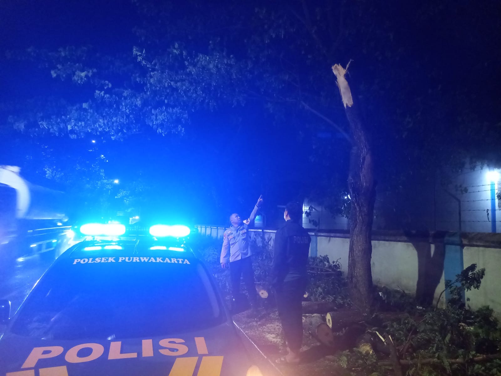 Personil Polsek Purwakarta Patroli Blue light Pastikan di tengah Hujan Deras, Pastikan wilayah Aman