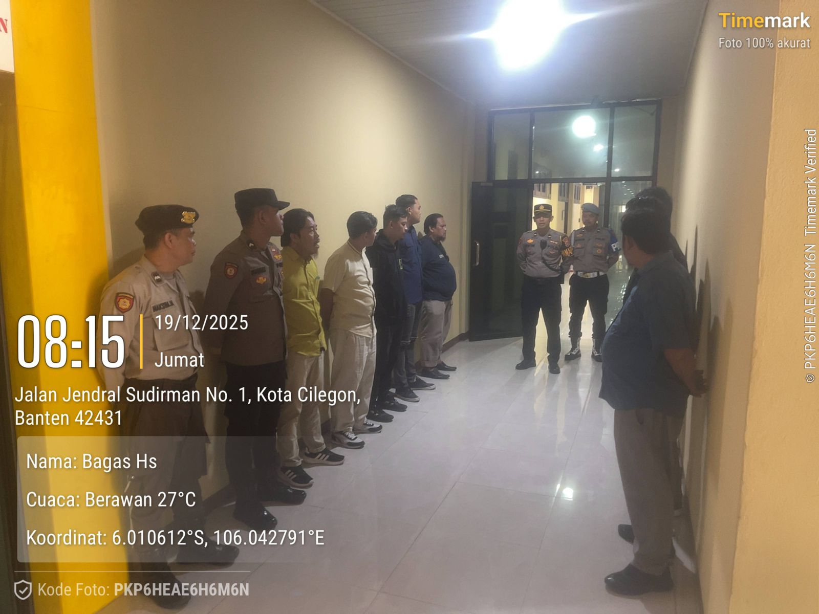 Kapolres Cilegon Polda Banten AKBP  Dr.Martua Raja Taripar Laut Silitonga melalui Kasatreskrim Polres Cilegon AKP Yoga Tama mengatakan, “kegiatan personel satreskrim polres cilegon melakukan piket di penjagaan pintu masuk Mako Polres Cilegon mengantisipasi adanya kejahatan yang menggangu kenyamanan dan keamanan mako Polres Cilegon dalam melakukan pelayanan kepada masyarakat kota Cilegon".