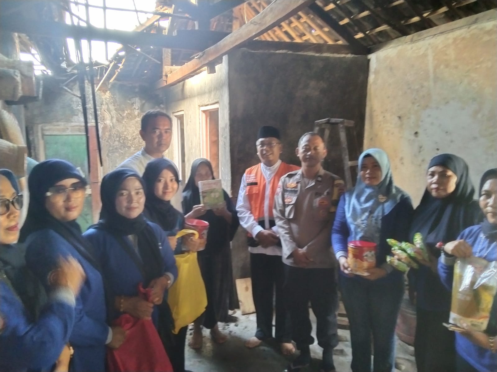 Cilegon - Bhabinkamtibmas Kelurahan Gunung Sugih AIPTU Tri Widodo, mendampingi BAZNAS Kota Cilegon memberikan bantuan kepada Ibu Junariyah, warga Link Kopo Landoh, Kel. Gunung Sugih, Ciwandan, Jum'at (19/12/2025).