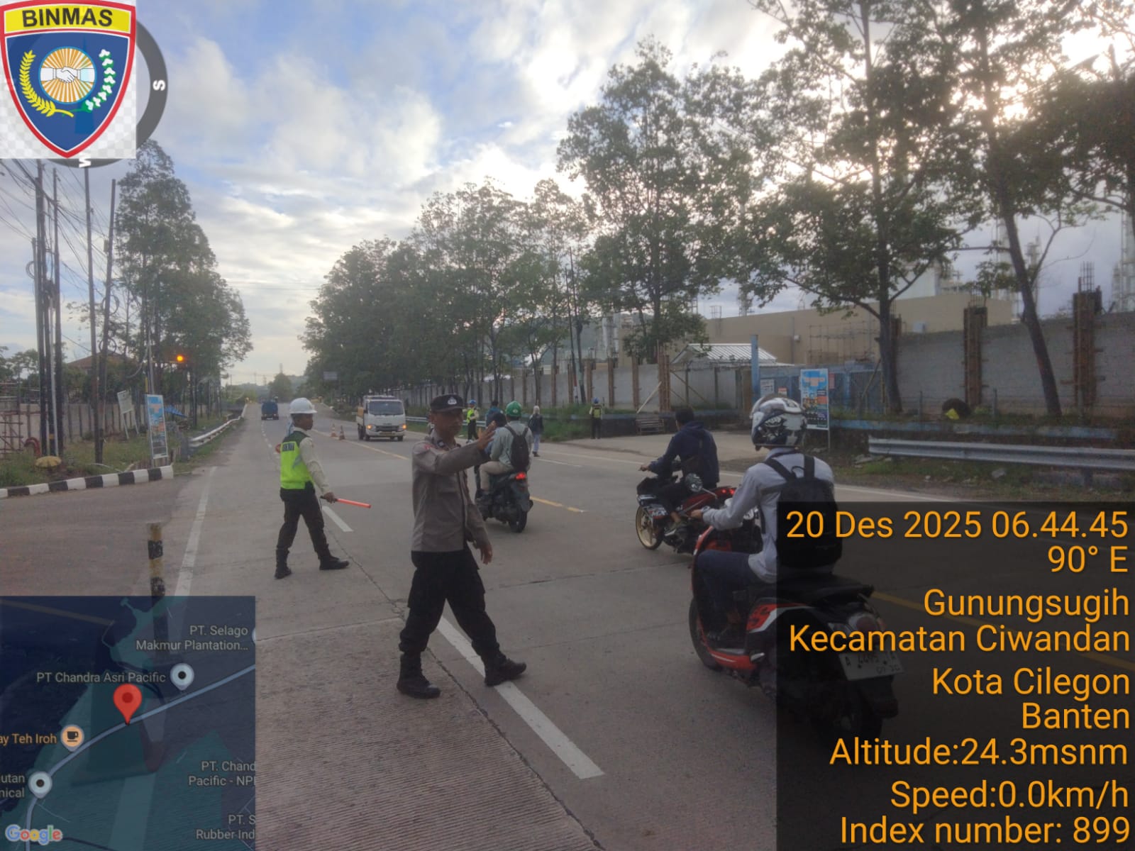 Cilegon - Dalam Mewujudkan Aksi Nyata Pelayanan Kepada Masyarakat,Personil Polsek Ciwandan Polres Cilegon Polda Banten Laksanakan Strong Poin Pengaturan Lalu-lintas, Jum'at  (19/12/2025).