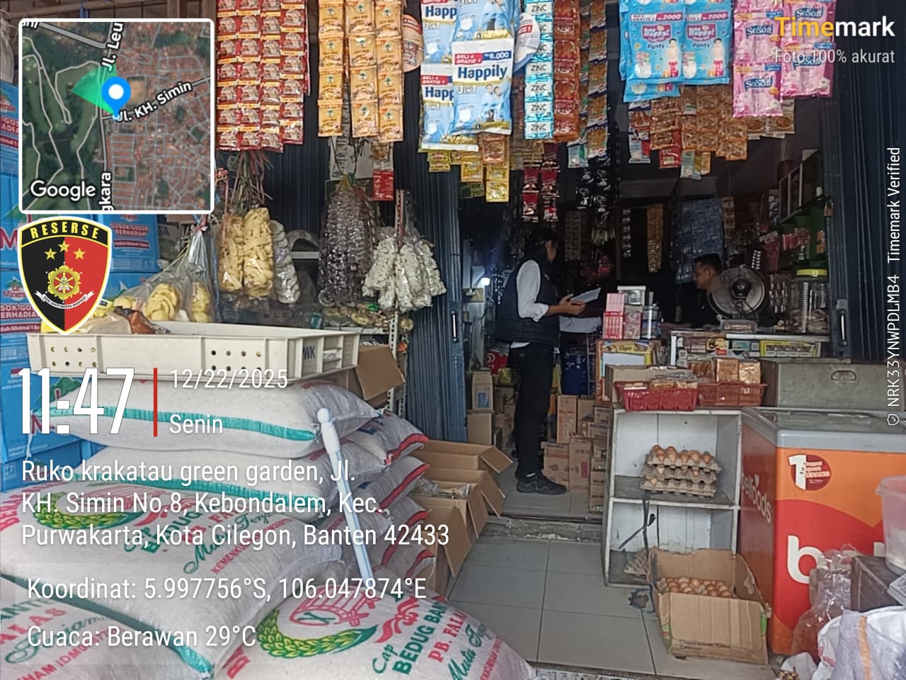 Cilegon – Unit II Satreskrim Polres Cilegon Polda Banten melakukan pengecekan terhadap persediaan dan harga bahan pangan di Pasar Kelapa, Cilegon, senin tanggal 22 Desember 2025.