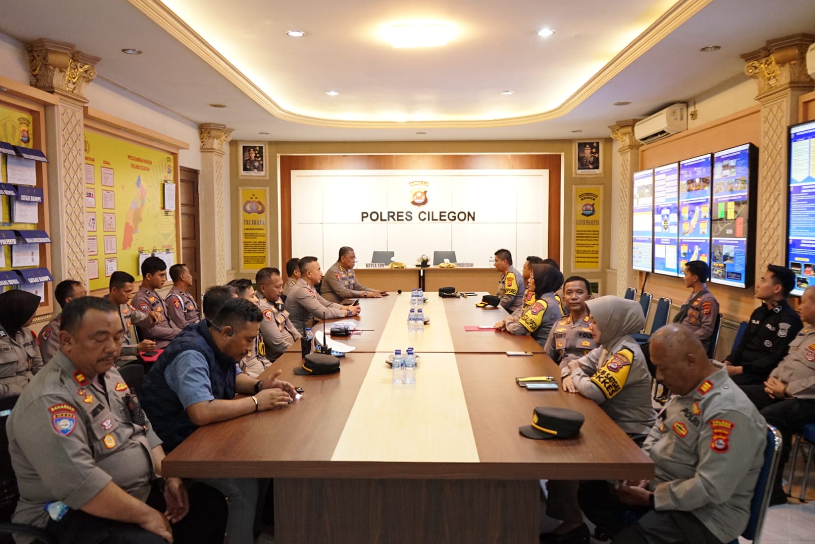 Pada kesempatan tersebut, Kapolres Cilegon memperkenalkan jajaran pejabat utama Polres Cilegon sekaligus menyampaikan paparan singkat terkait situasi umum dan pelaksanaan Operasi Lilin Maung 2025 di wilayah hukum Polres Cilegon, termasuk kesiapan personel, sarana prasarana, serta pola pengamanan yang telah diterapkan.