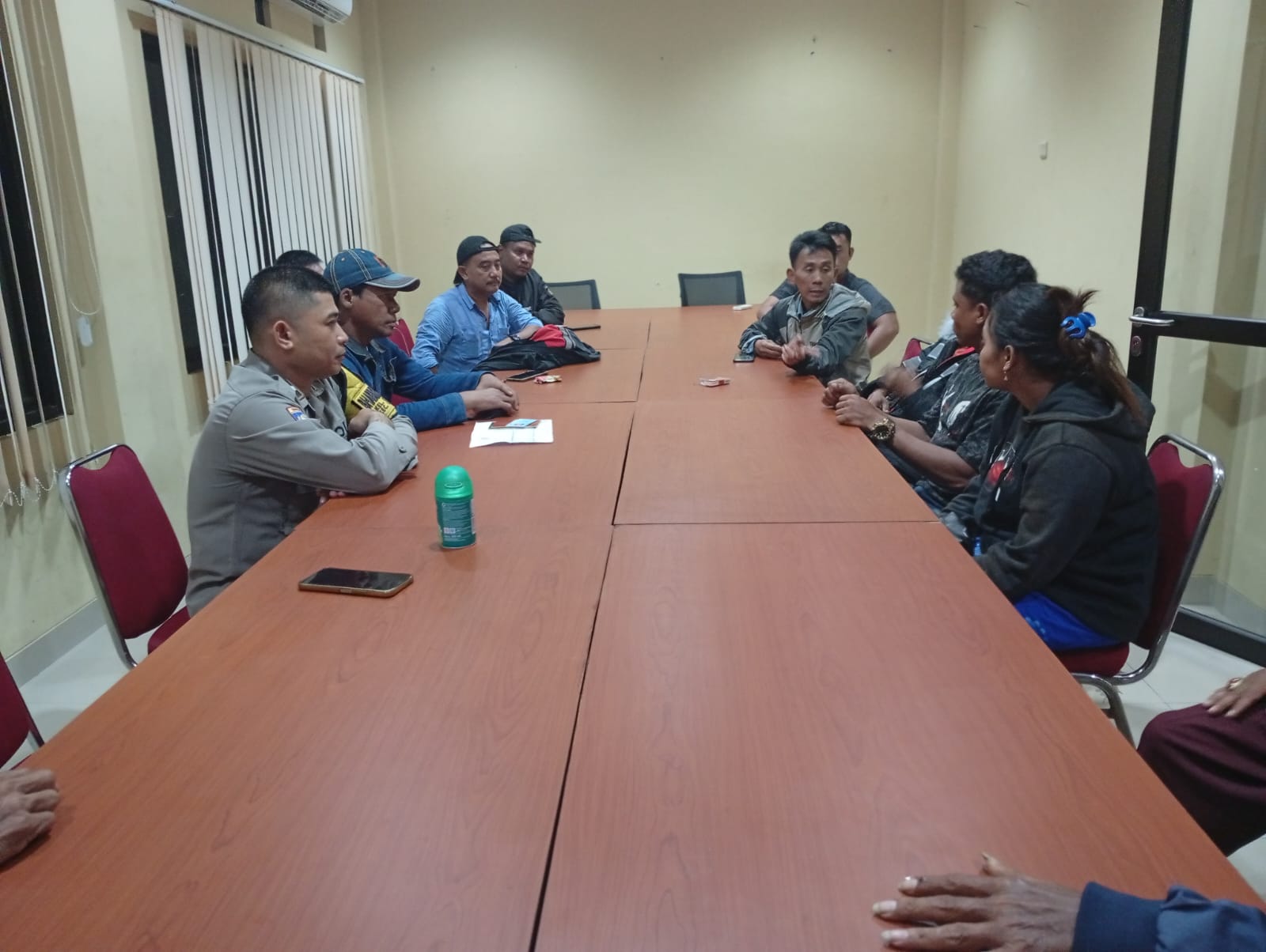 Atas kejadian tersebut di atas,kedua belah pihak sepakat menyelesaikan permasalahan ini dengan cara musyawarah kekeluargaan,kegiatan problem solving ini berjalan dengan aman dan kondusif, ujarnya.