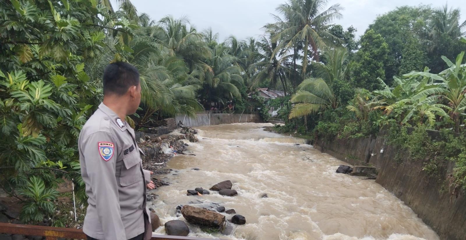 Cilegon - Personel Polsek Anyar Polres Cilegon Polda Banten melaksanakan Patroli kewilayahan mengecek debit air di Sungai pasca Hujan antisipasi banjir di wilayah Kec. Anyar, Rabu (24/12).