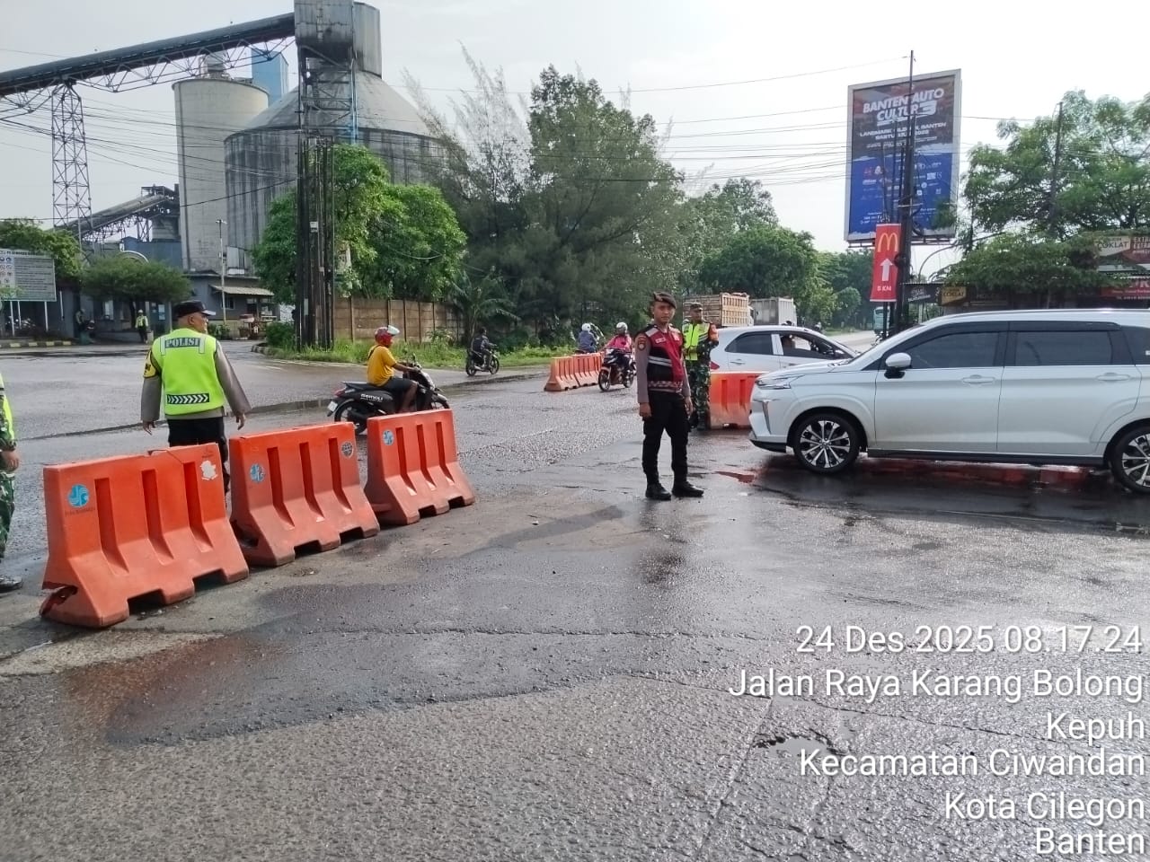 Kapolres Cilegon Polda Banten AKBP Dr. Martua Raja Taripar Laut Silitonga yang di wakili Kapolsek Ciwandan Polres Cilegon Polda Banten Kompol Andi Suherman mengatakan, "Guna terciptanya kelancaran arus Libur Natal Dan tahun Baru 2025-2026, Pospam 5 Ciwandan merekayasa arus lalu lintas yang akan menuju Pelabuhan Pelindo Banten.