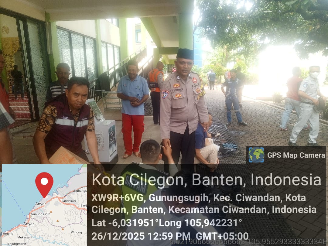 Cilegon - Bhabinkamtibmas Polsek Ciwandan Polres Cilegon Polda Banten Selesai melaksanakan Sholat secara berjama’ah dan Sampaikan Himbauan-himbauan Kamtibmas Kepada Masyarakat Jama'ah Yang ada Dimasjid, Jum'at (26/12/2025).