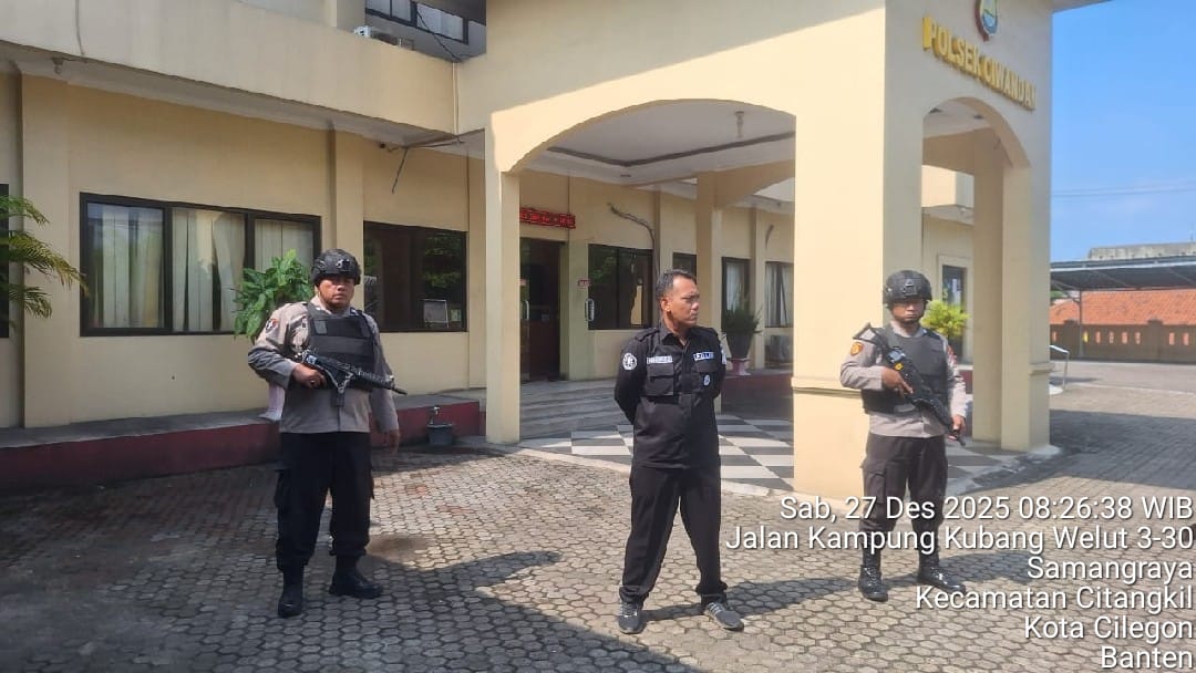 Cilegon - Guna mengantisipasi adanya potensi ancaman dan gangguan terhadap keamanan kantor maupun keselamatan personel piket jaga, Personil Polsek Ciwandan Polres Cilegon Polda Banten selalu tingkatkan kesiapsiagaan dan kewaspadaan dengan rutin menggelar kegiatan Sistem Pengamanan Mako (Sispam Mako), Sabtu (27/12/2025).