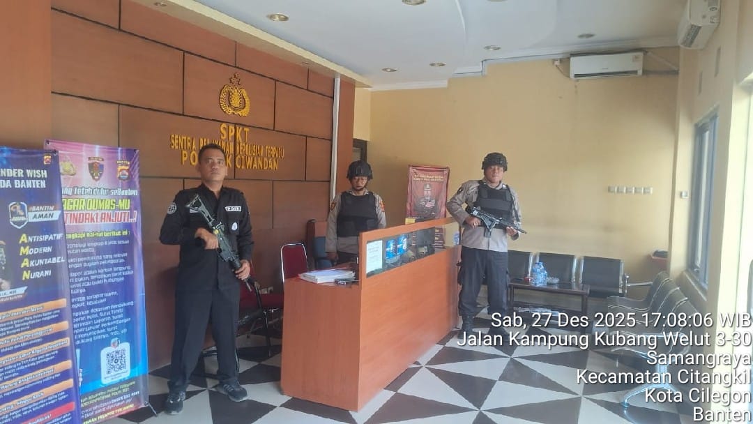 Cilegon - Guna mengantisipasi adanya potensi ancaman dan gangguan terhadap keamanan kantor maupun keselamatan personel piket jaga, Personil Polsek Ciwandan Polres Cilegon Polda Banten selalu tingkatkan kesiapsiagaan dan kewaspadaan dengan rutin menggelar kegiatan Sistem Pengamanan Mako (Sispam Mako), Sabtu (27/12/2025).