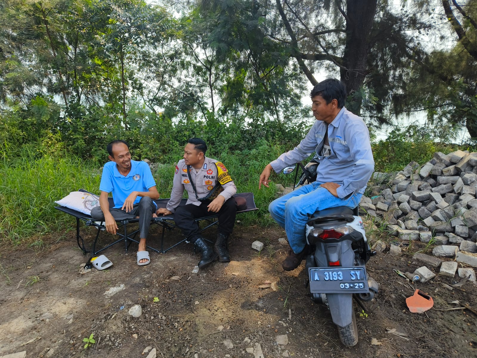 Jalin Silaturahmi, Bhabinkamtibmas Polsek Kawasan Pelabuhan Banten berbincang ke Buruh Pelabuhan