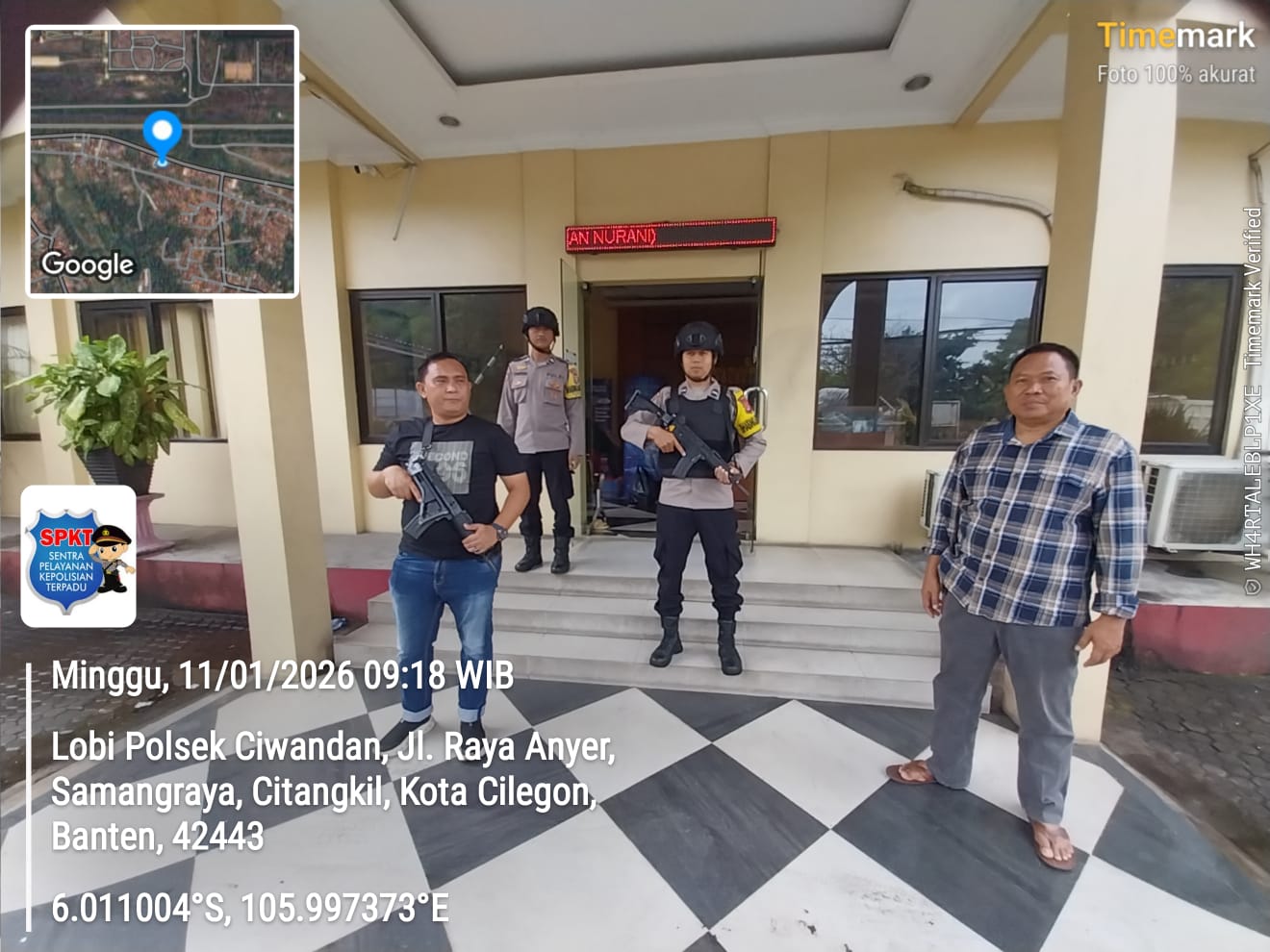 Cilegon - Dalam Kesiap Siagaan dan Memperketat Penjagaan Mako (Markas Komando), Personil Polsek Ciwandan Polres Cilegon Polda Banten melaksanakan Sistem Pengamanan Markas Komando (Sispam Mako), Sabtu (10/01/2026).