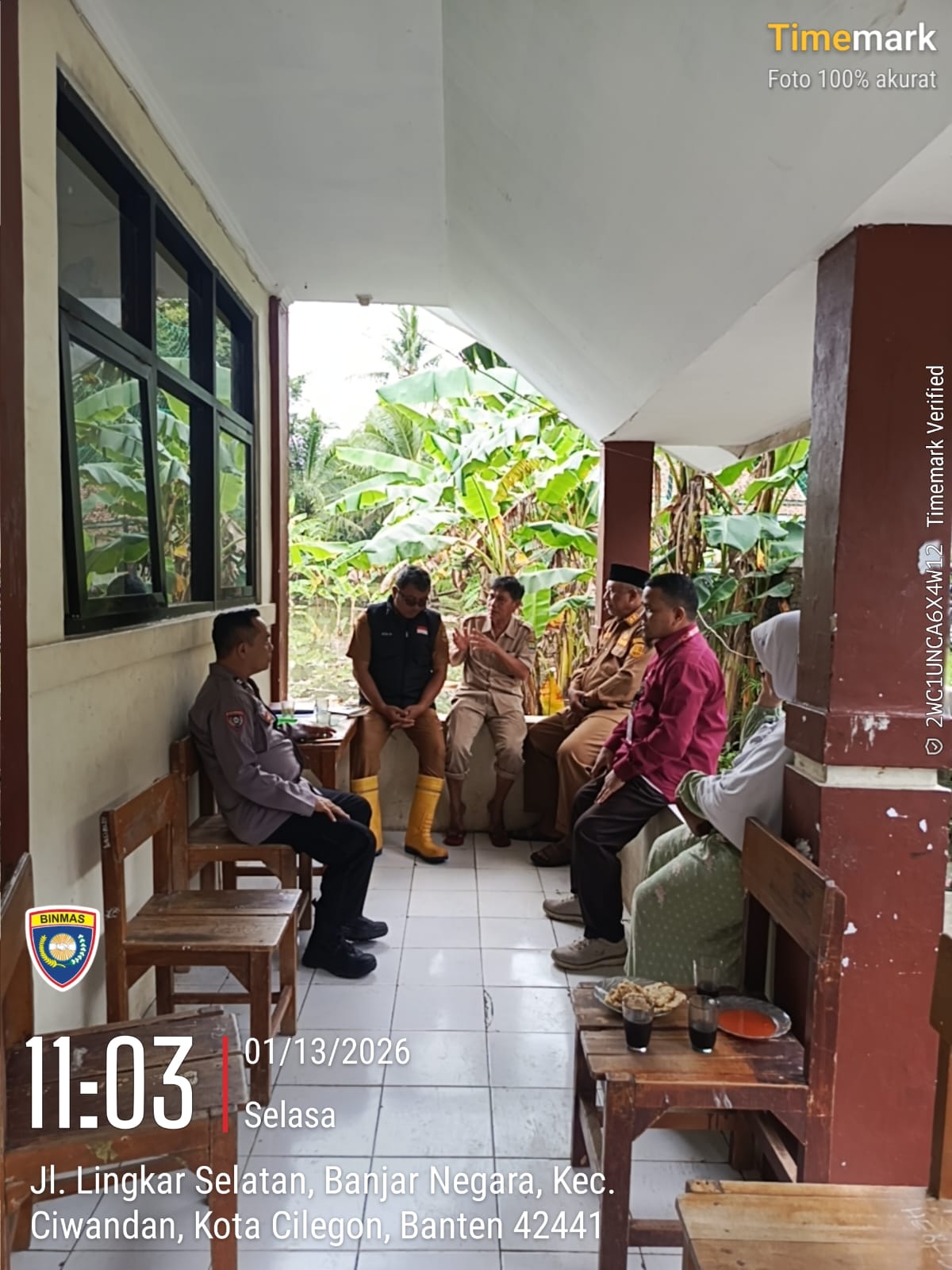 Cilegon - Aiptu Jamaludin Bhabinkamtibmas Kelurahan Banjarnegara, menghadiri musyawarah dengan pihak PU Kota Cilegon di SMA Al-Khairiyah 4 Cilegon. Musyawarah ini membahas genangan air di samping sekolah yang menyebabkan air masuk ke ruang kelas pasca hujan. Selasa (13/01/2026).