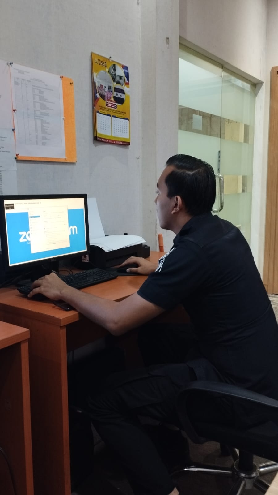 Anggota Tik Polres Cilegon Menyiapkan Sarana dan Prasarana Untuk Kegiatan Zoom meeting Dalam pelaksanaan kegiatan zoom meeting tersebut anggota TIK Polres Cilegon yang bertanggung jawab untuk menyiapkan peralatan zoom. Selain itu agar di tidak ada gangguan jaringan sebelum pelaksanaan anggota TIK melakukan pemeriksaan terhadap sarana dan prasarana tersebut . Satu jam sebelum kegiatan zoom meeting itu dimulai. Kapolres Cilegon AKBP. DR. MARTUA RAJA TARIPAR LAUT SILITONGA. melalui Kasi TIK AIPTU Suwanto, S.H. menyampaikan bahwa “untuk menunjang kelancaran penyampaian informasi anggota TIk Polres Cilegon selalu memeriksa sarana dan prasarana tersebut, sebelum maupun pada saat pelaksanaan akan selalu di monitor”