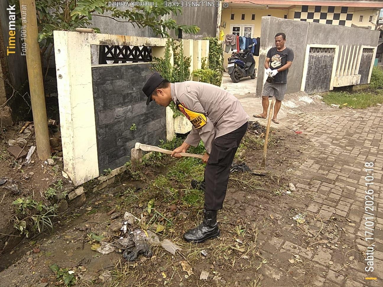 Bhaninkamtibmas Gotong Royong Bersih-bersih Lingkungan Masyarakat