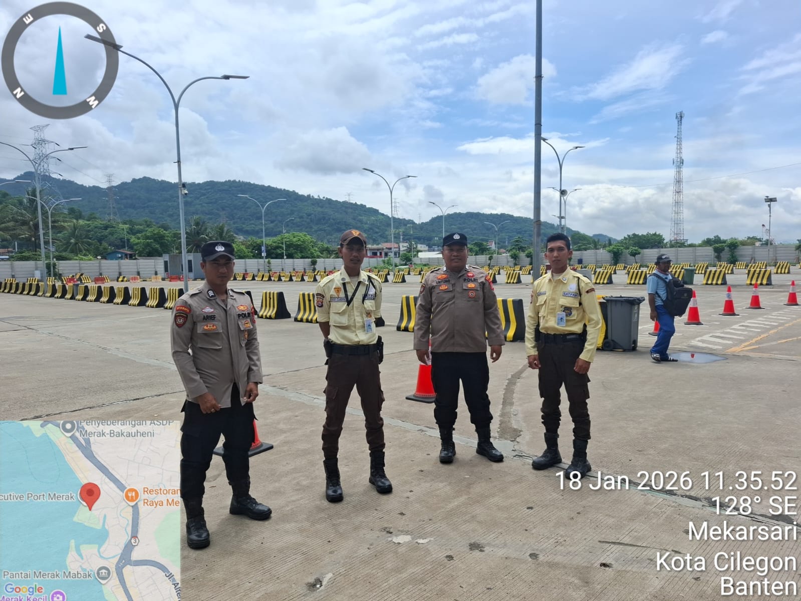 Cilegon - Personel Polsek Kskp Merak Polres Cilegon Polda Banten melaksanakan sambang dan patroli kawasan pelabuhan merak dalam rangka menjaga Harkamtibmas di Kawasan Pelabuhan Merak, Minggu (18/01/2026).