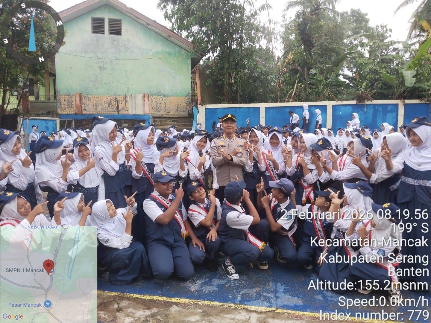 Kapolres Cilegon Polda Banten AKBP Dr. Martua Raja Taripar Laut Silitonga melalui Kapolsek Mancak  AKP ACUM SUTARLIA Beserta Bhabinkamtibmas AIPDA AGUS YEYEN, AIPDA DARSIWAN Melaksanakan giat *Sambang dan silaturahmi dalam rangka Police goes To School dan Pelaksanaan Commander Wish Kapolres Cilegon yaitu TRENDING* dalam *Upacara Bendera* di Lapangan SMPN 1 Mancak Kec. Mancak Kab. Serang.  Dalam sambutanya Kapolsek Mancak menyampaikan pesan-pesan Kamtibmas dalam upacara bendera sebagai berikut: