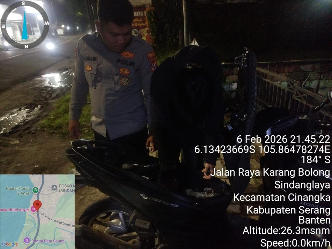 *POLRES CILEGON* - Patroli malam hingga dini hari ini rutin dilakukan oleh anggota Kepolisian Polsek Cinangka Polres Cilegon Polda Banten.