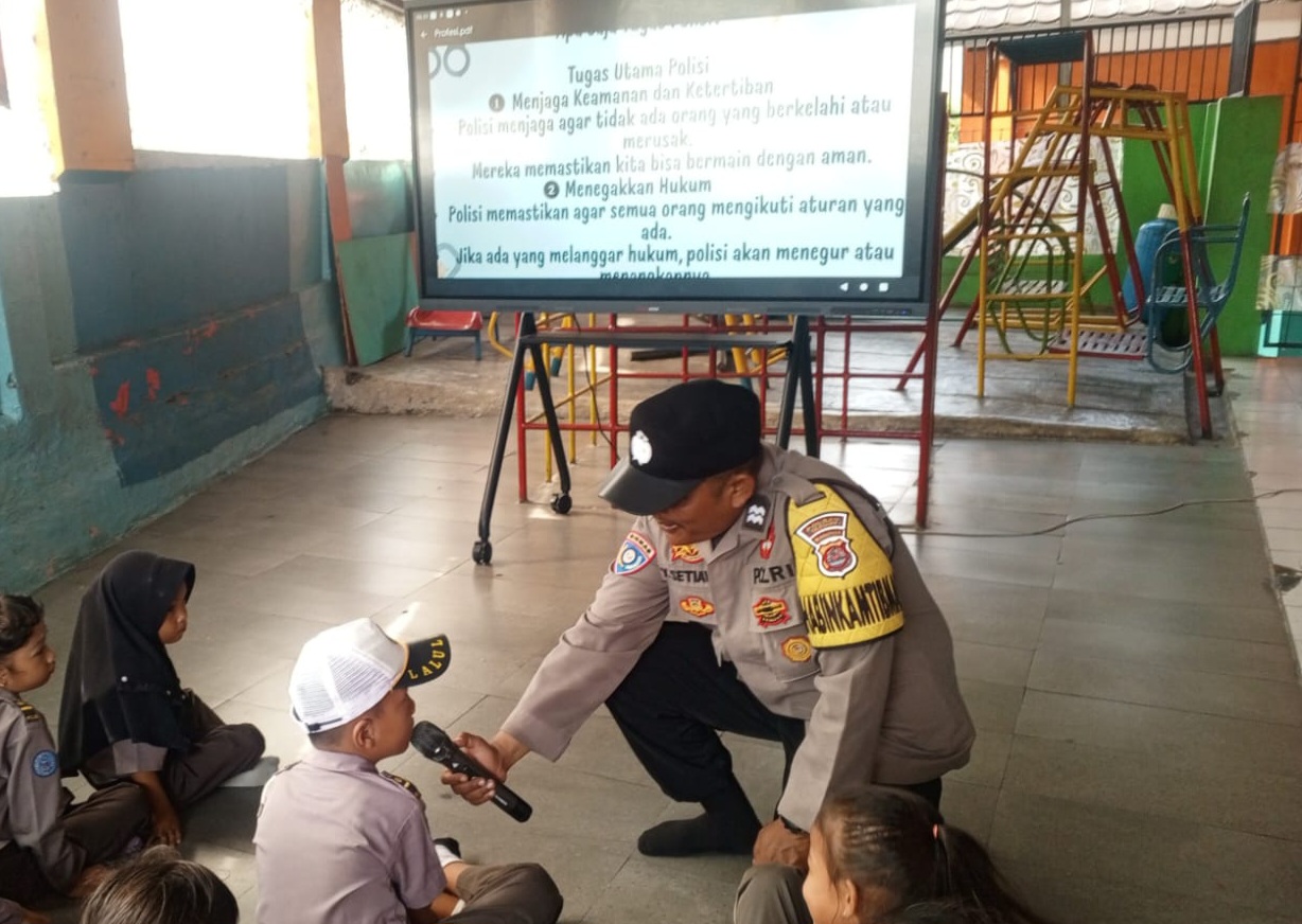 Dalam kesempatan ini, Bhabinkamtibmas Polsek Ciwandan mengajak anak-anak berinteraksi dan Selain itu juga disisipi dengan pengenalan tentang tugas-tugas polisi secara umum.