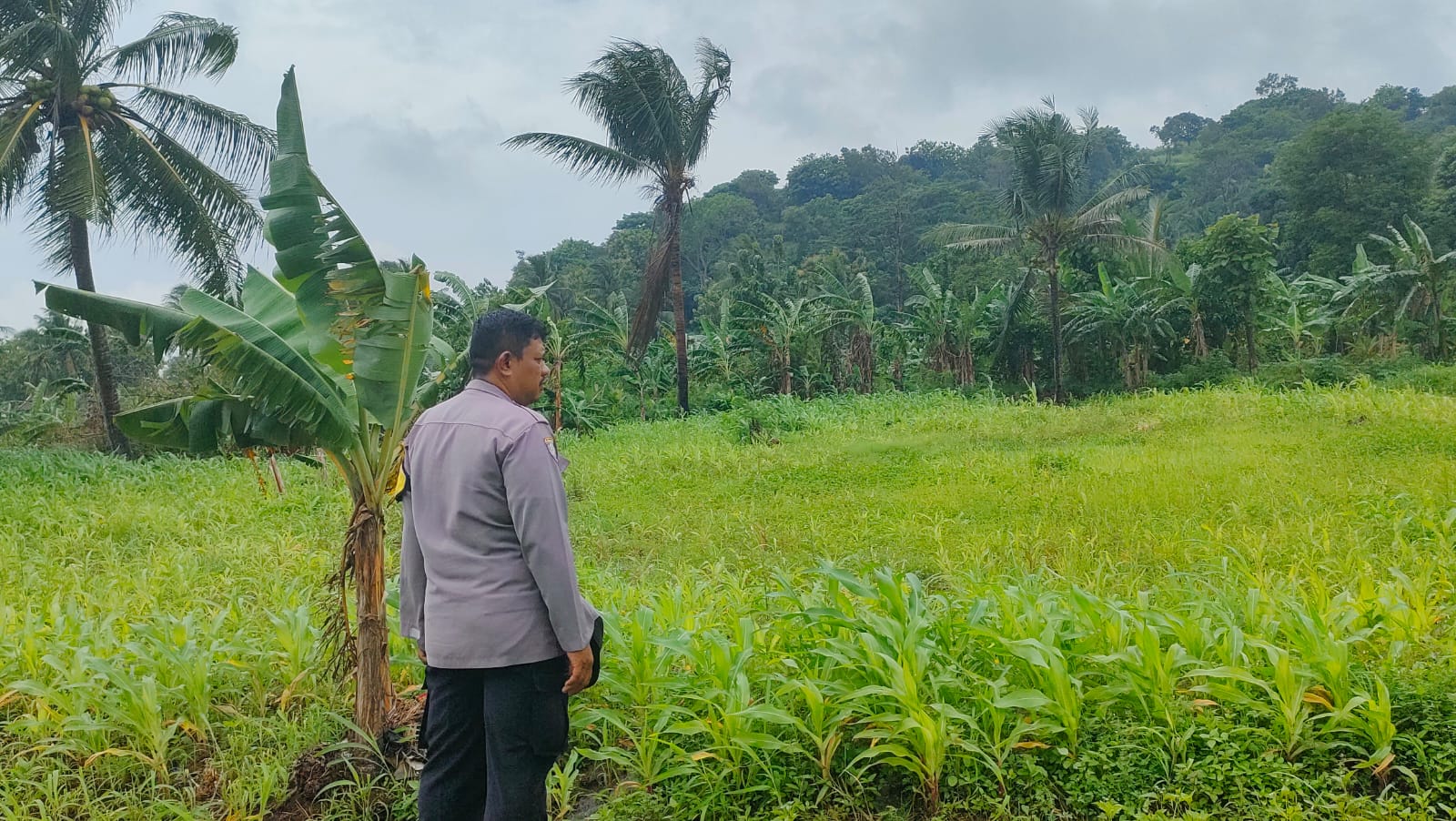 PERSONIL BHABINKAMTIBMAS POLSEK PURWAKARTA LAKUKAN PENGECEKAN TANAMAN JAGUNG