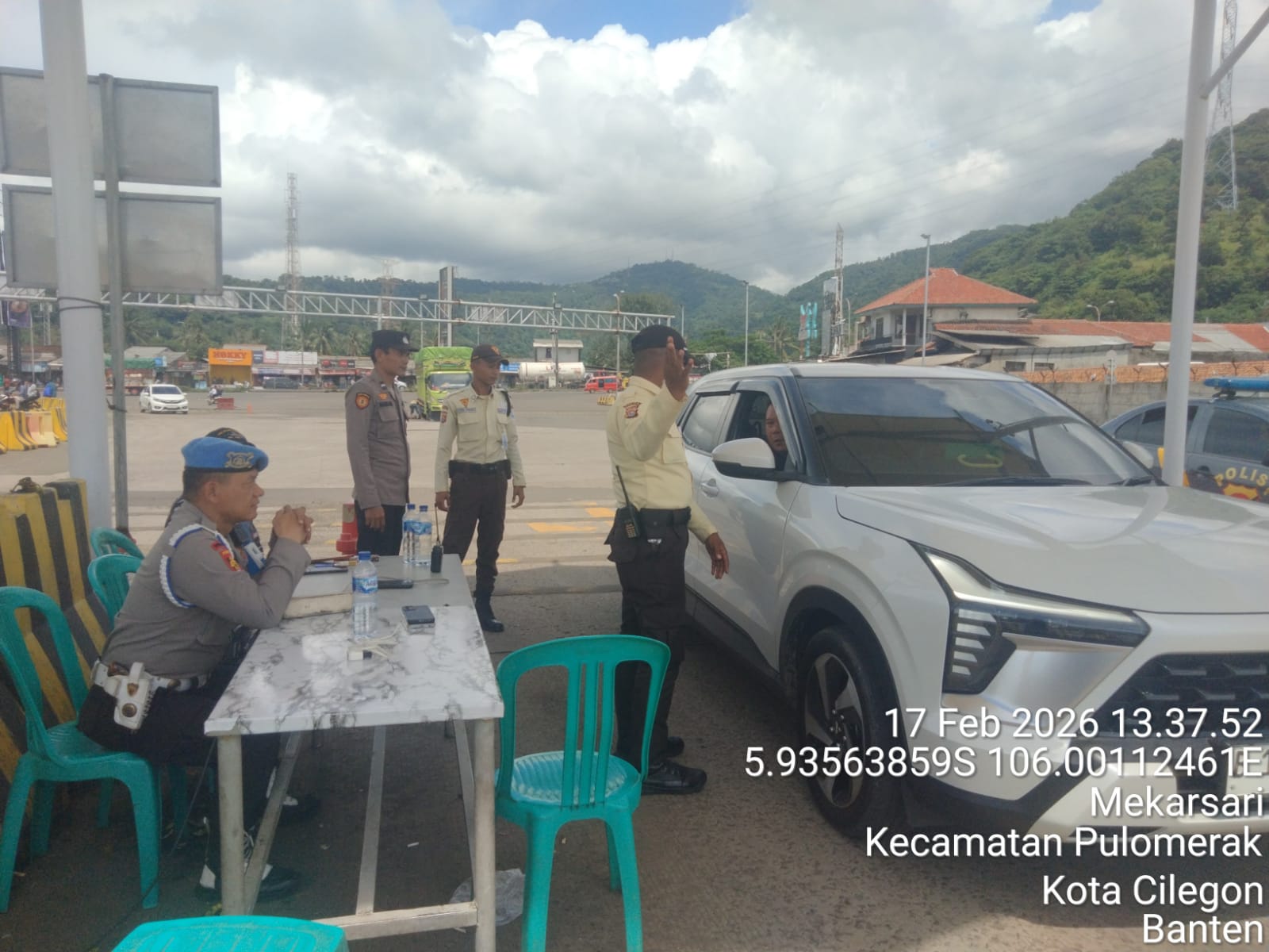 Cilegon - Personel Polsek Kskp Merak Polres Cilegon Polda Banten melaksanakan sambang dan patroli kawasan pelabuhan merak dalam rangka menjaga Harkamtibmas di Kawasan Pelabuhan Merak, Selasa (17/02/2026).