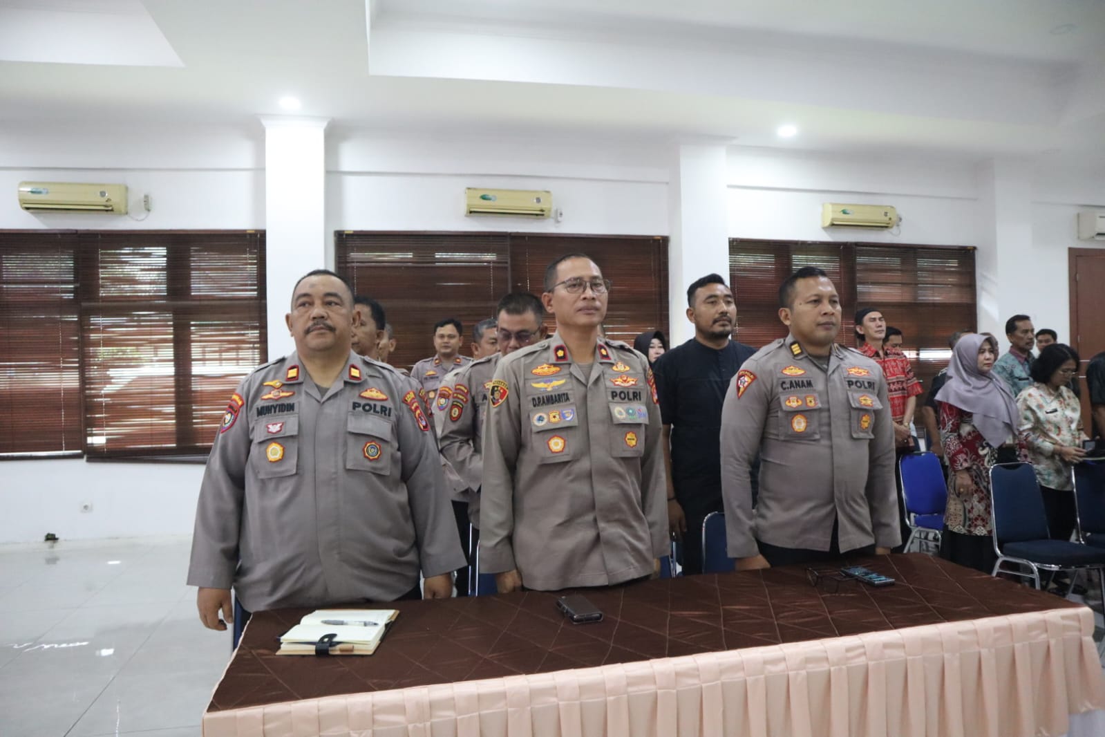 Rapat koordinasi dilaksanakan di bawah penanggung jawab Kapolres Cilegon AKBP Dr. Martua Raja Taripar Laut Silitonga, S.H., S.I.K., M.Si. Kegiatan turut dihadiri Wakapolres Cilegon KOMPOL M. Ridzky Salatun, S.I.K., Wakil Ketua I DPRD Kota Cilegon H. Sohidin, S.H., Wakil Ketua II DPRD Kota Cilegon H. Masduki, Asda II Kota Cilegon H. Dana Sujaksani, S.Sos., M.Si., Danramil Cilegon Mayor Inf Usman, Plt Kadis Ketahanan Pangan Kota Cilegon Novi Yogi, Sekjen MUI Kota Cilegon H. Sutisna Abas, Ketua MUI Kabupaten Serang H. Muhit, Ketua FKUB Kabupaten Serang KH. Komarudin, Head Operation ASDP Merak I Putu Widhiyatamaja, Jr Officer Sc PT Pertamina Tanjung Gerem Achtizen, para PJU Polres Cilegon, Kapolsek jajaran Polres Cilegon, perwakilan SKPD Kota Cilegon, pimpinan instansi terkait, serta pimpinan organisasi keagamaan.