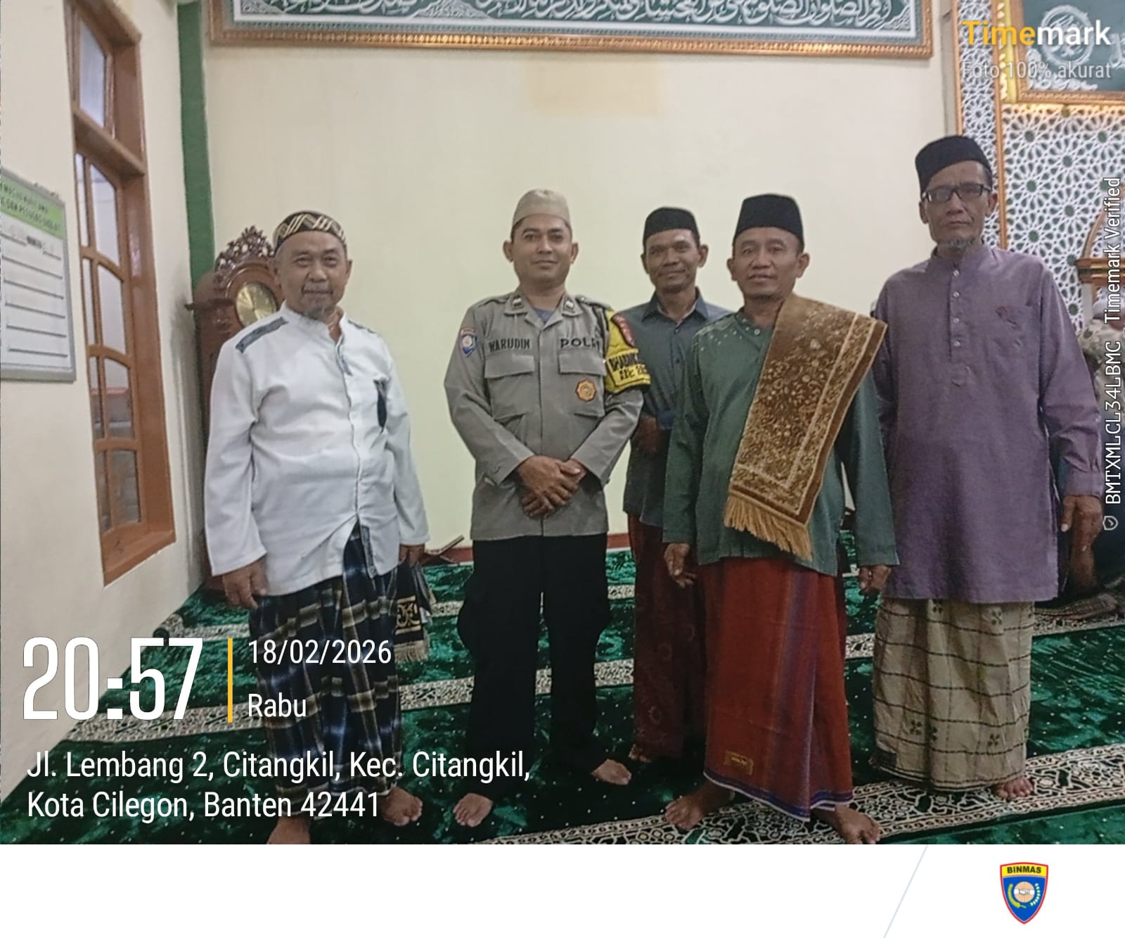 Cilegon - Bhabinkamtibmas polsek Ciwandan Polres Cilegon Polda Banten Silahturahmi Dan Tarawih Keliling Bersama warga Masyarakat lingkungan yang bertempat di masjid lingkungan binaannya, Kamis (19/02/2026).