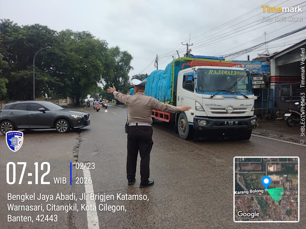 Cilegon – Polres Cilegon Polda Banten laksanakan Kegiatan Strong Point dalam rangka pengaturan arus lalu lintas dan kepadatan kendaraan pada jalur protokol/rawan macet di Darkum Polres Cilegon, Senin (23/02/2026).
